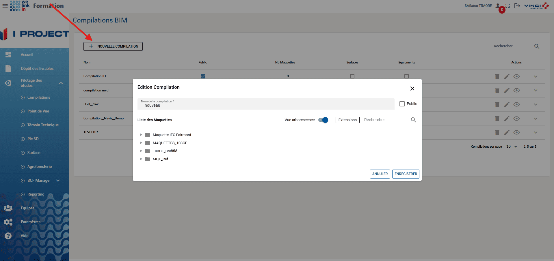 - Cliquez en haut de l’écran sur le bouton « Nouvelle compilation ».