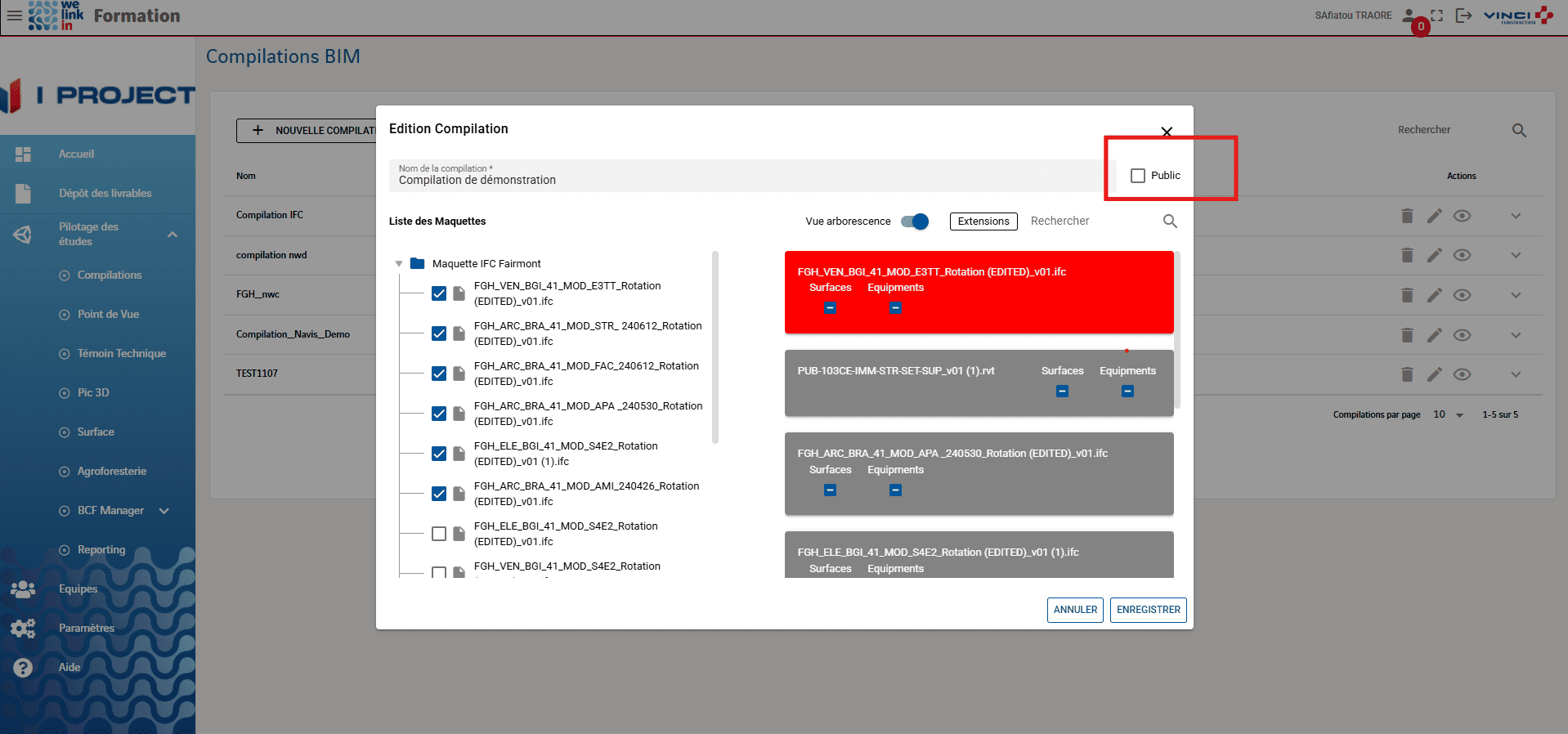 ⚠️ Une compilation rendue publique devient accessible à tous les utilisateurs, sans restriction.