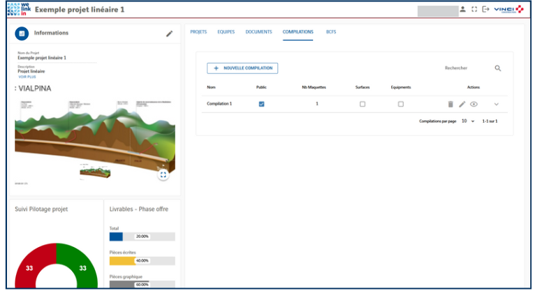 À partir du Dashboard linéaire, vous pouvez créer des compilations globales en combinant des maquettes issues des sous-projets et/ou du projet parent.