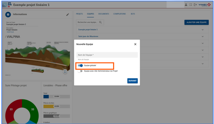 • Activez l’option “Équipe globale” pour que l’équipe soit automatiquement ajoutĂ©e Ă  tous les sous-projets.