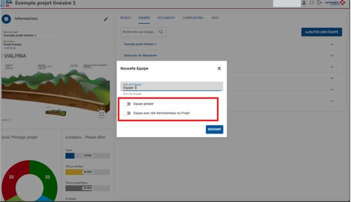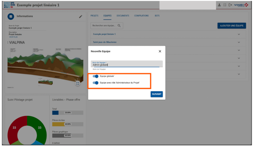 3.Ajout Ă©quipe combinaison : “Équipe globale” + “Administrateur du projet”